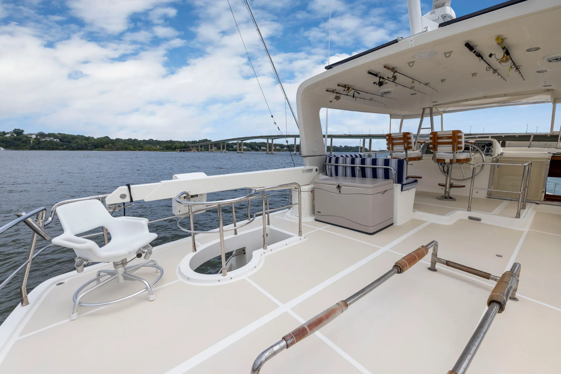 - Portuguese bridge access gate to foredeck; storage lockers inside bridge